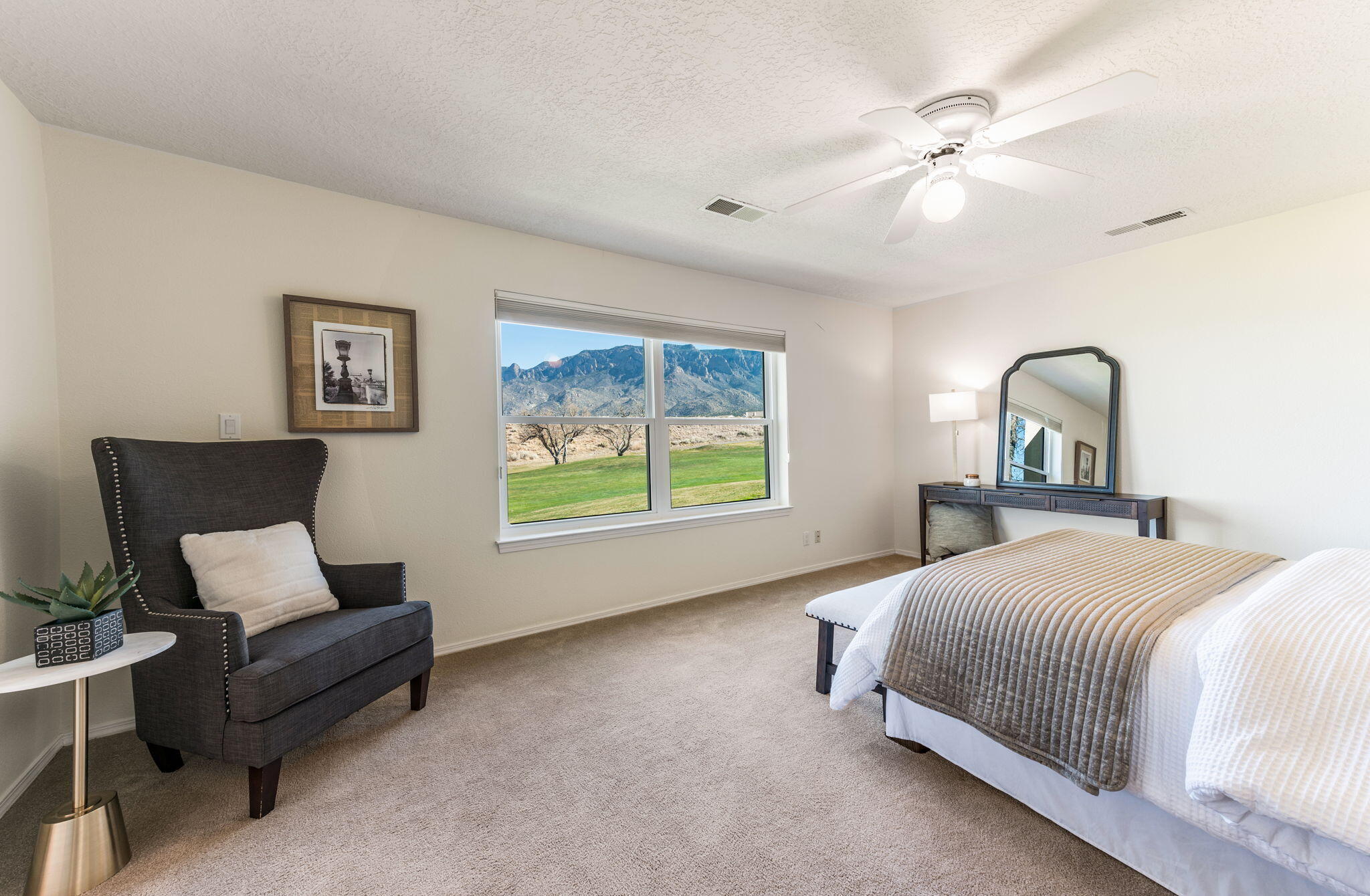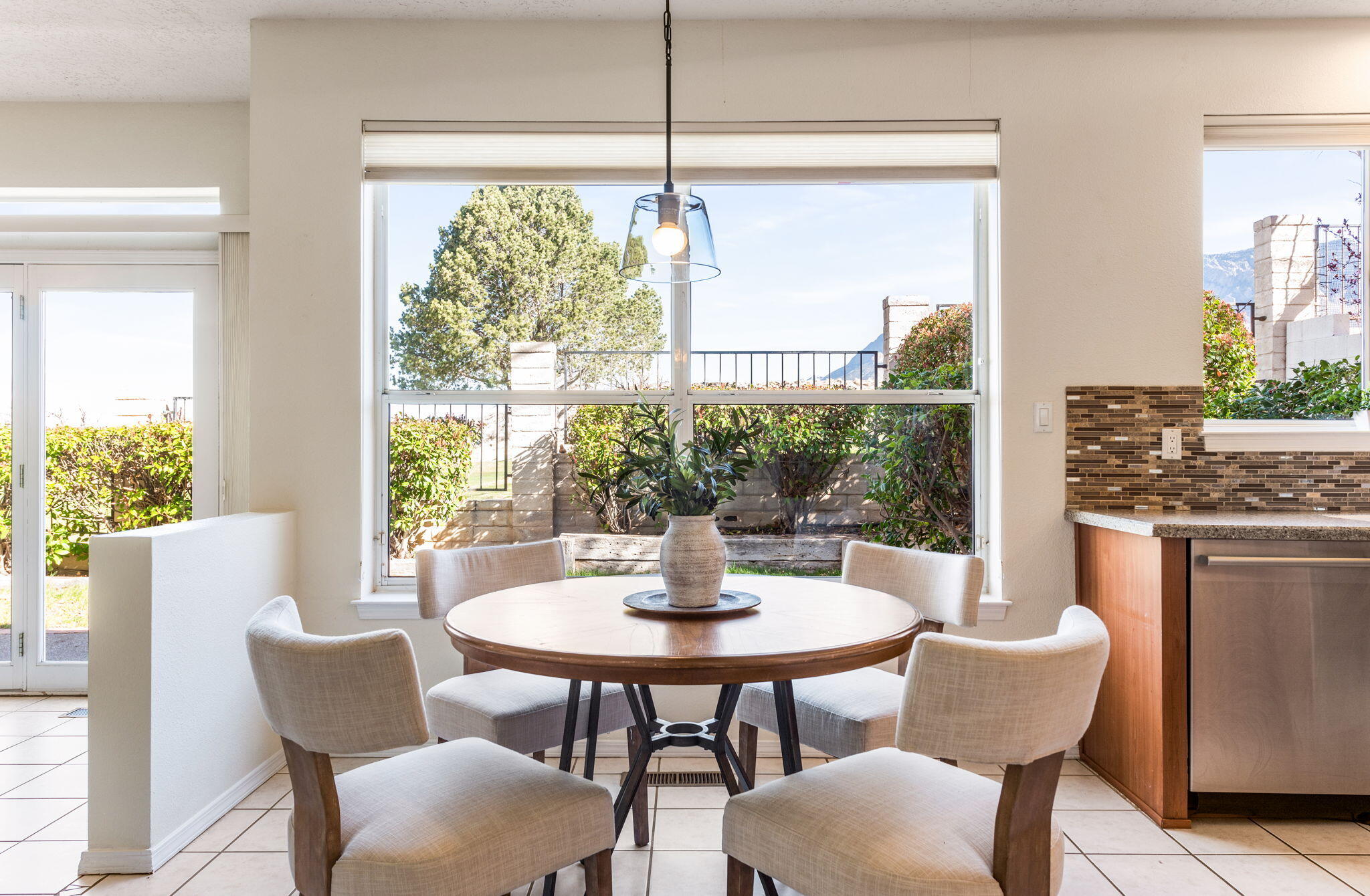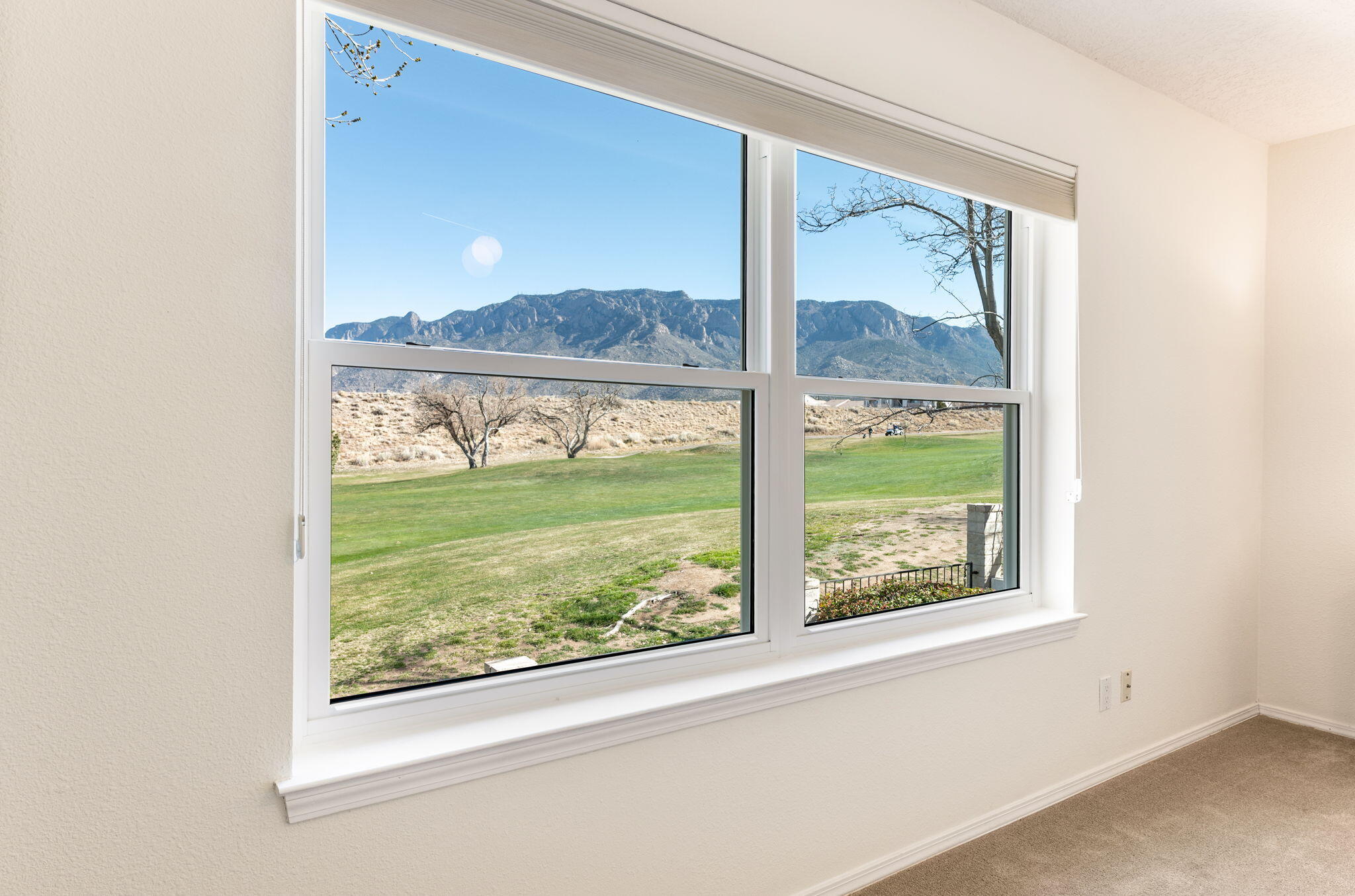 Backing directly to the Tanoan golf course with wide views of the Sandia Mountains, this light-filled home offers a front-row seat to some of Albuquerque's best sunrises and sunsets.The two-story layout includes 4 bedrooms and 3 baths across approximately 2,710 square feet, with multiple living areas that provide flexibility for daily life. Natural light moves easily through the home, and the kitchen--remodeled about ten years ago--connects comfortably with the main living spaces, making it a natural gathering spot.Lovingly maintained over the years, the home also offers a 3-car garage and practical storage throughout. Located just off Academy and Tramway, the neighborhood offers convenient walkability to nearby grocery, coffee, restaurants, and retail.