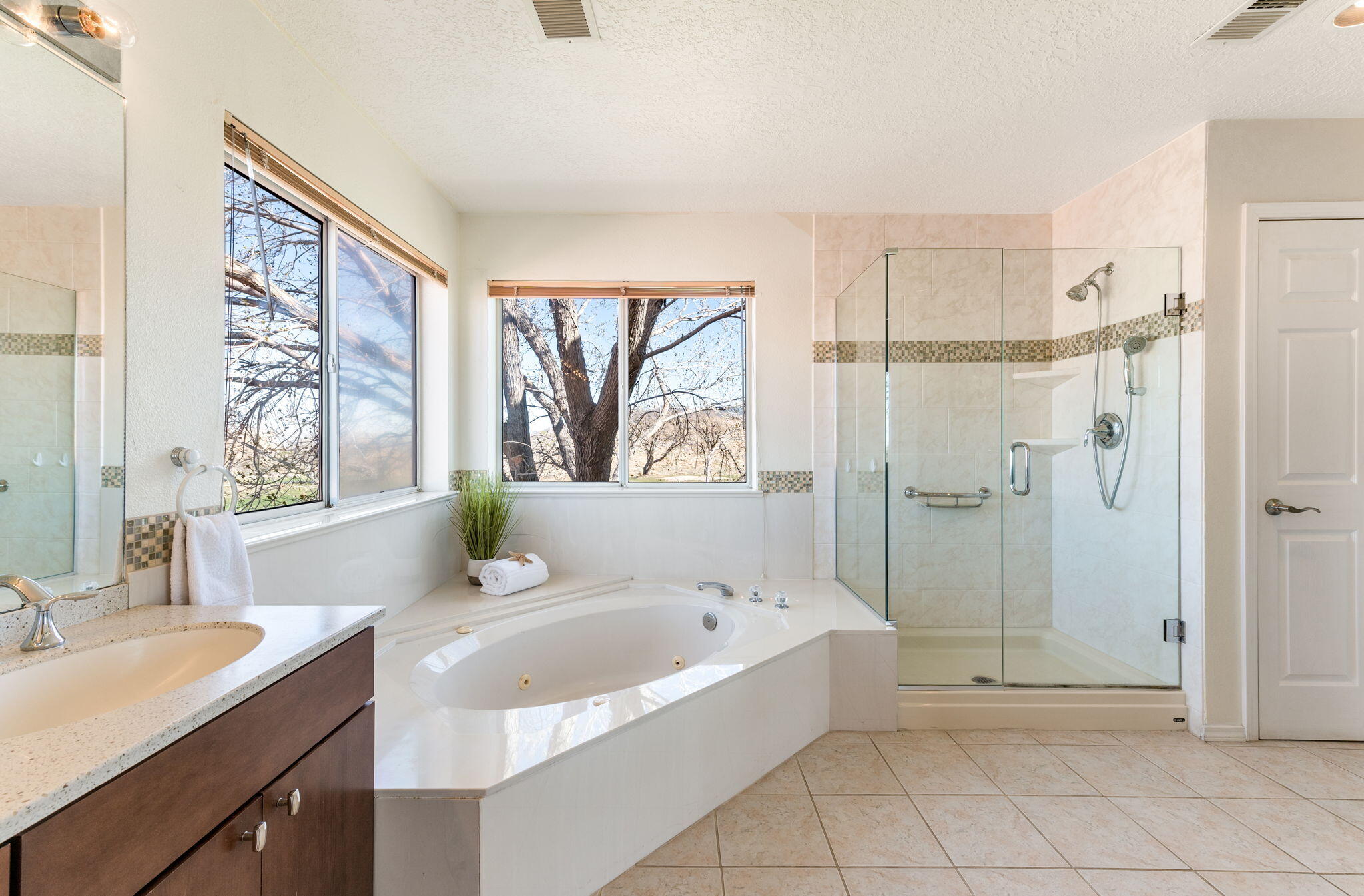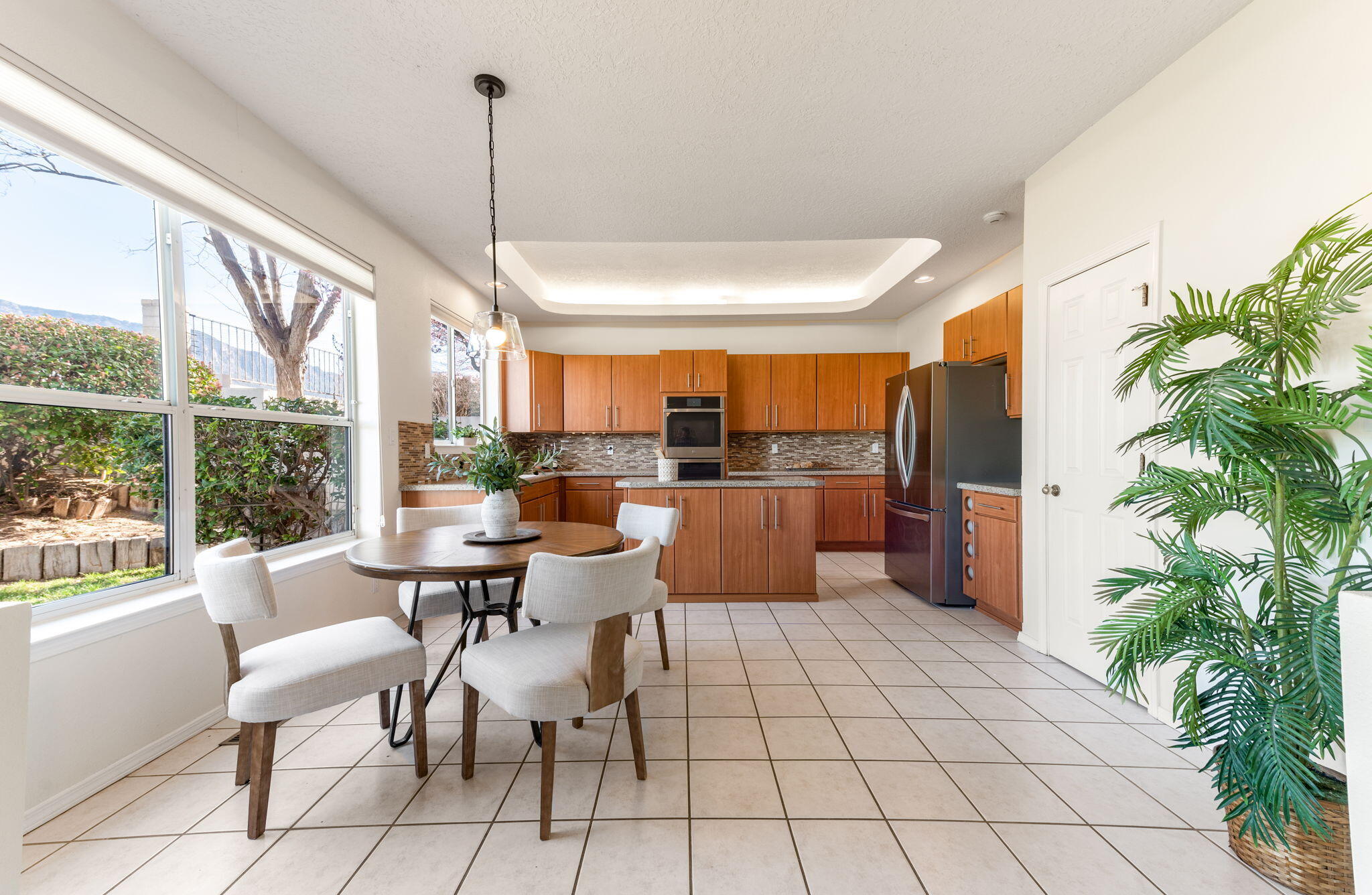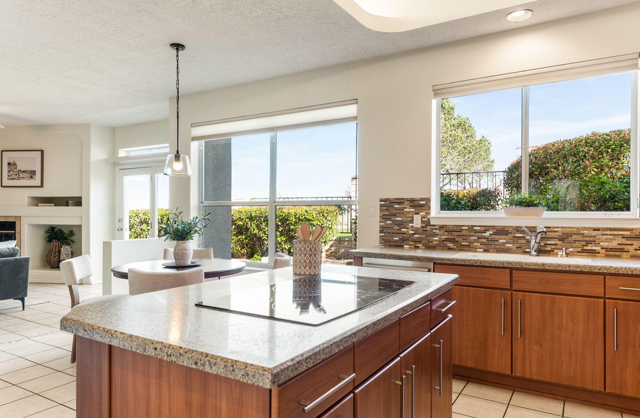 Backing directly to the Tanoan golf course with wide views of the Sandia Mountains, this light-filled home offers a front-row seat to some of Albuquerque's best sunrises and sunsets.The two-story layout includes 4 bedrooms and 3 baths across approximately 2,710 square feet, with multiple living areas that provide flexibility for daily life. Natural light moves easily through the home, and the kitchen--remodeled about ten years ago--connects comfortably with the main living spaces, making it a natural gathering spot.Lovingly maintained over the years, the home also offers a 3-car garage and practical storage throughout. Located just off Academy and Tramway, the neighborhood offers convenient walkability to nearby grocery, coffee, restaurants, and retail.