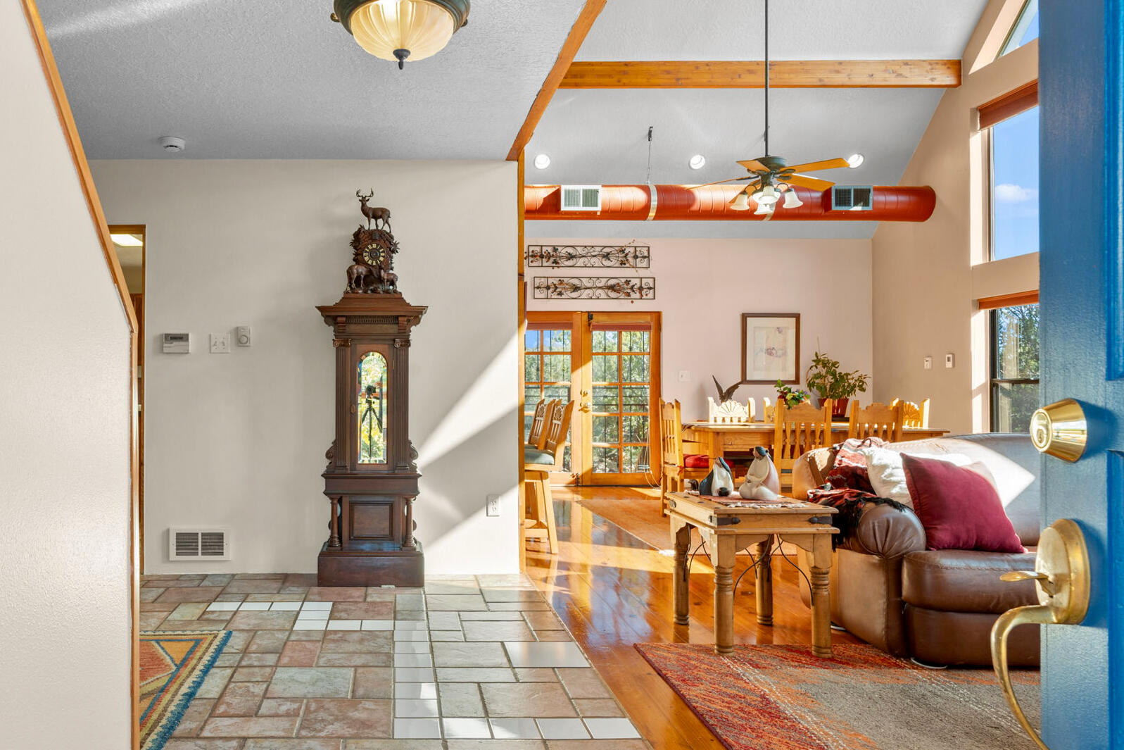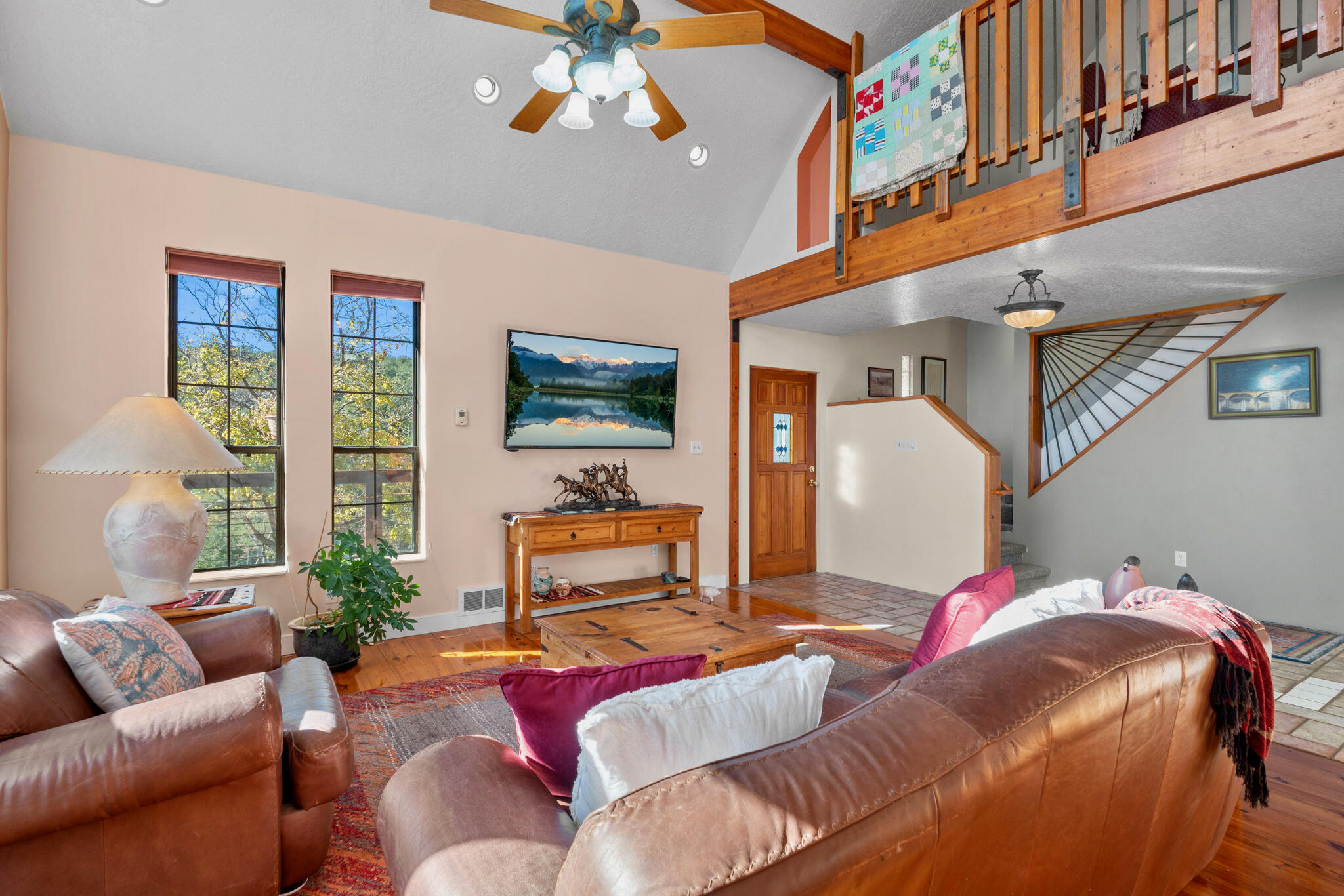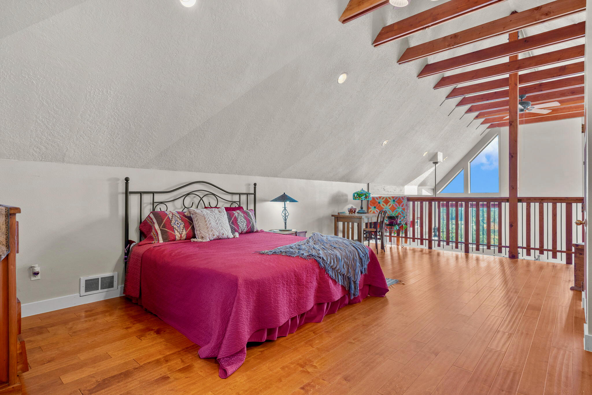 Peace, light, and open land define this one-owner mountain home set on just over two acres in MagicValley. Built in 1996, the three-story, 3,062-square-foot residence feels quietly grounded from the start,surrounded by trees, meadow space, and wide-open views in every direction.Sunlight moves beautifully through the home thanks to its passive solar design, creating warm,comfortable living throughout the day. The main level offers an inviting living space with a natural,woodsy feel, and pylons are already in place for a future deck expansion overlooking the land.Downstairs, a large bonus room provides flexible space for a game room, studio, or relaxed hangout.