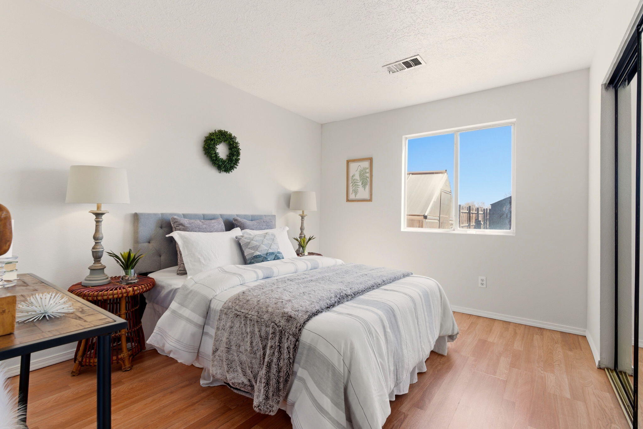 Freshly painted and move-in ready, this North Hills home offers a simple, comfortable space with features that make everyday living easy.Inside, the layout is bright and efficient with 2 bedrooms, 1 full bath & hard-surface flooring throughout--no carpet to maintain. The kitchen includes all appliances, making the transition into the home straightforward. A one-car garage adds both convenience and extra storage + washer & dryer ready to convey.Out back, the setting opens up in a way that feels larger than expected. The spacious backyard backs to an open space with views toward the Sandia Mountains, creating a sense of privacy and room to breathe.